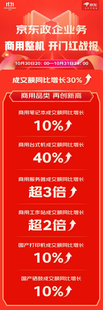 京东政企业务商用整机11.11开门红的战绩,充分展现了“又好又低廉”采购体验对政企客户的雄壮蛊卦力。将来,京东将继续联袂品牌伙伴,以可靠的品性保险与方便的劳动体系,助力千行百业兑现降本增效,稳步鼓舞数字化转型。